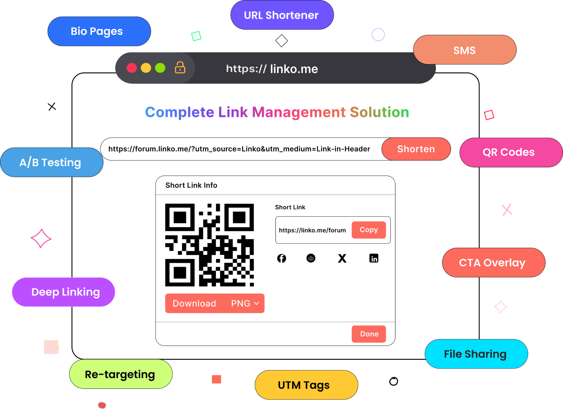 Linko is a powerful marketing tool that gives you complete control over all your links. whether you are an individual or a big company, with Linko you can create short, branded links that are easy to remember and share. you can also track the number of clicks on your links, create customizable microsites, and generate QR codes that can be scanned by mobile devices to quickly access your links.